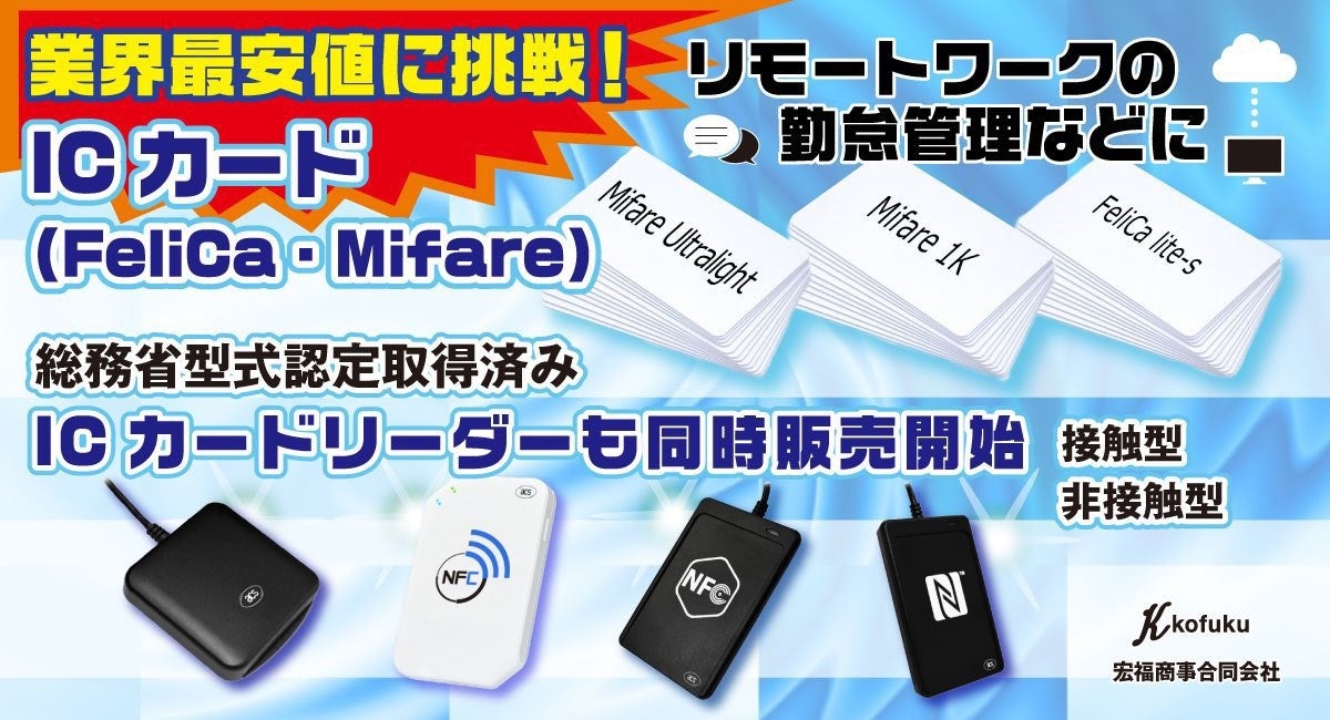 ICカードのFeliCaとMifareを業界最安値にて宏福商事ECショップで販売!1枚から1000枚までネットで購入可能。テレワークで需要拡大!