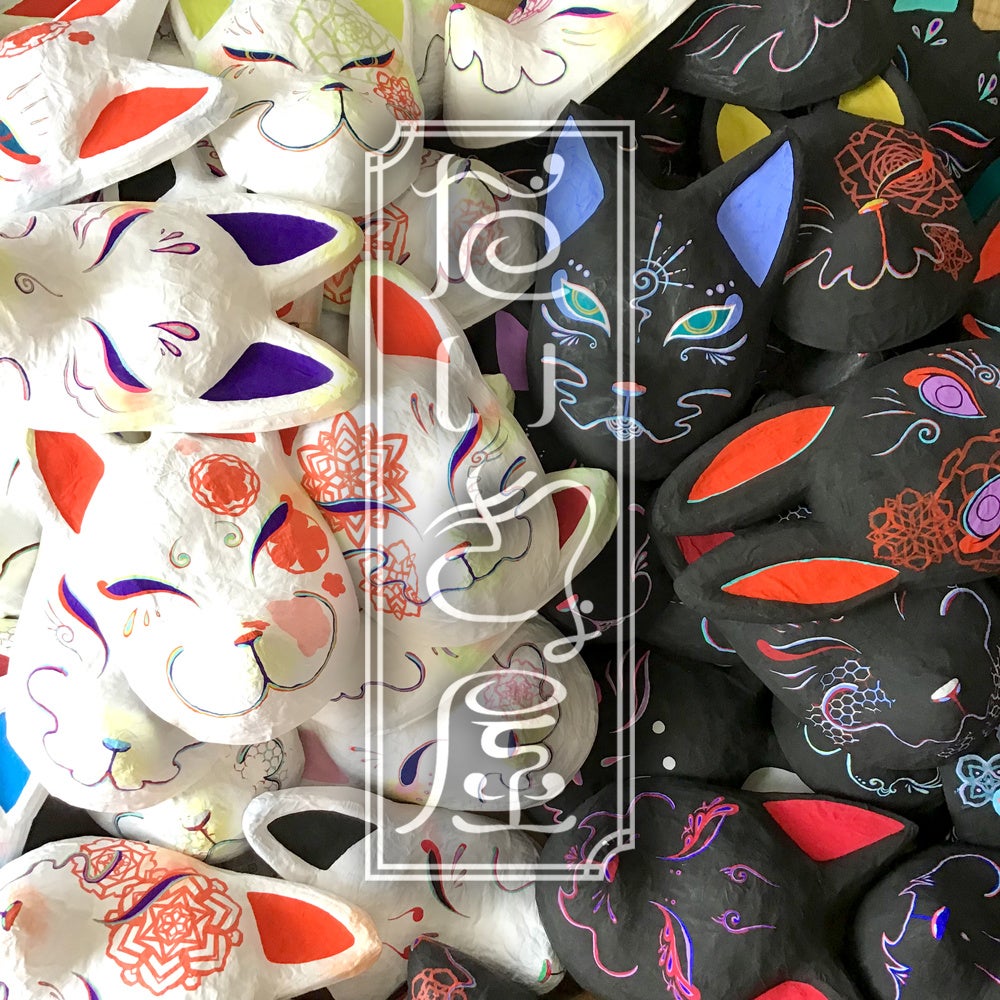 だいきょ屋は狐を中心に、猫や兎などの動物をモデルにした張り子面の制作、販売をしている個人作家。
