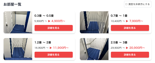 荷物以上に大きな部屋を借りてしまうことや、狭すぎて荷物が入らなかったなんていうトラブルを回避できます。