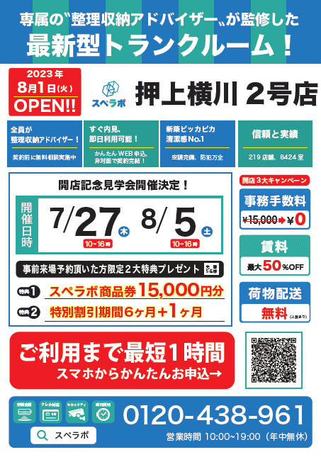 オープンに合わせ7月27日(木)、8月5日(土)に見学会を実施しますので、ぜひ【スペラボ・押上横川2号店】にお越しくださいませ。