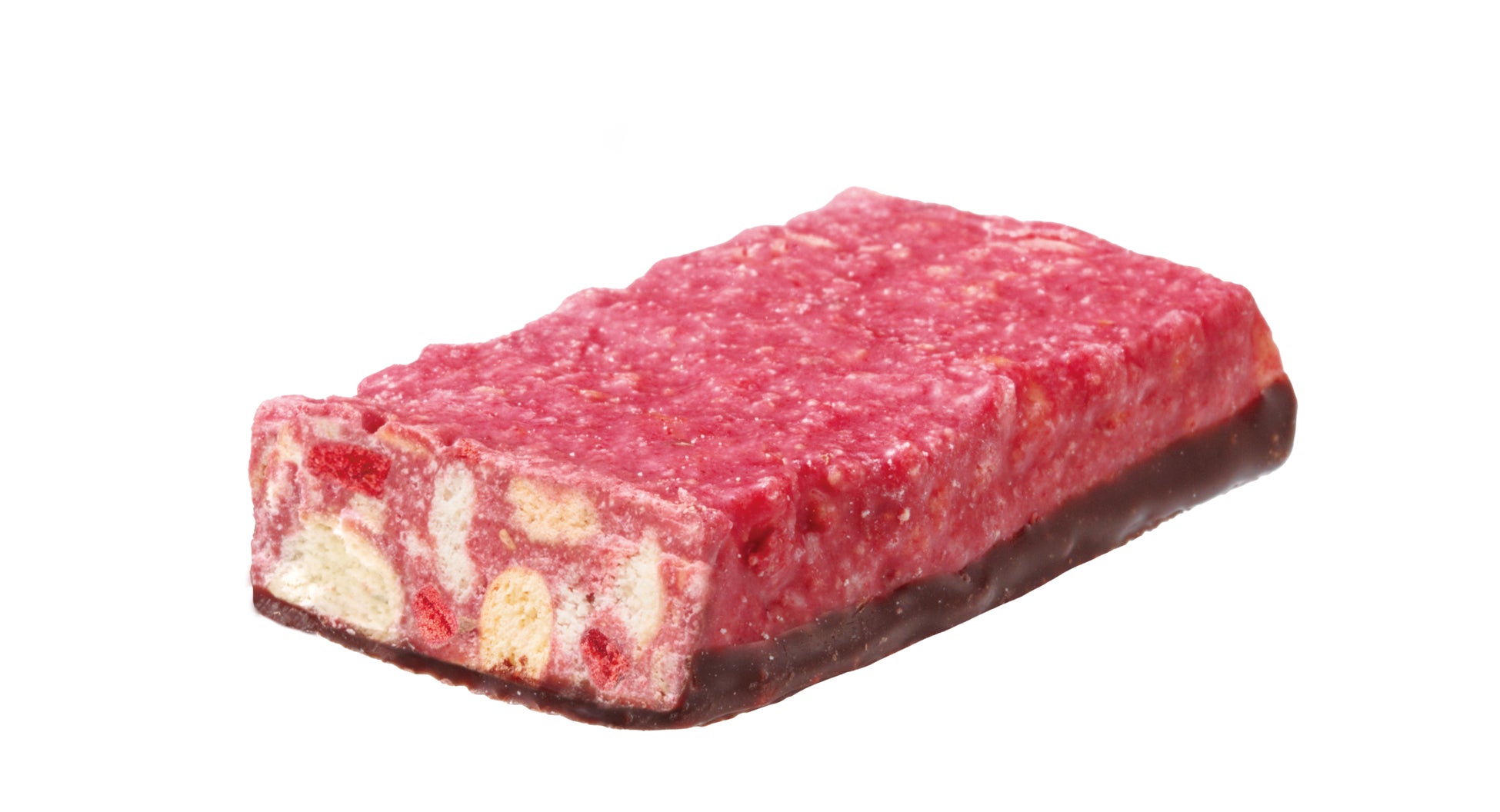 本商品は、濃厚な苺の味わいを追求したチョコバーです。カリッと食感がアクセントの苺チップ、甘酸っぱい味わいが特長の苺パウダーをふんだんに使用し、見た目も味わいも濃苺な商品に仕上げました。ザクザクと噛むほどに広がる、濃苺の甘酸っぱい味わいを是非ご賞味ください。