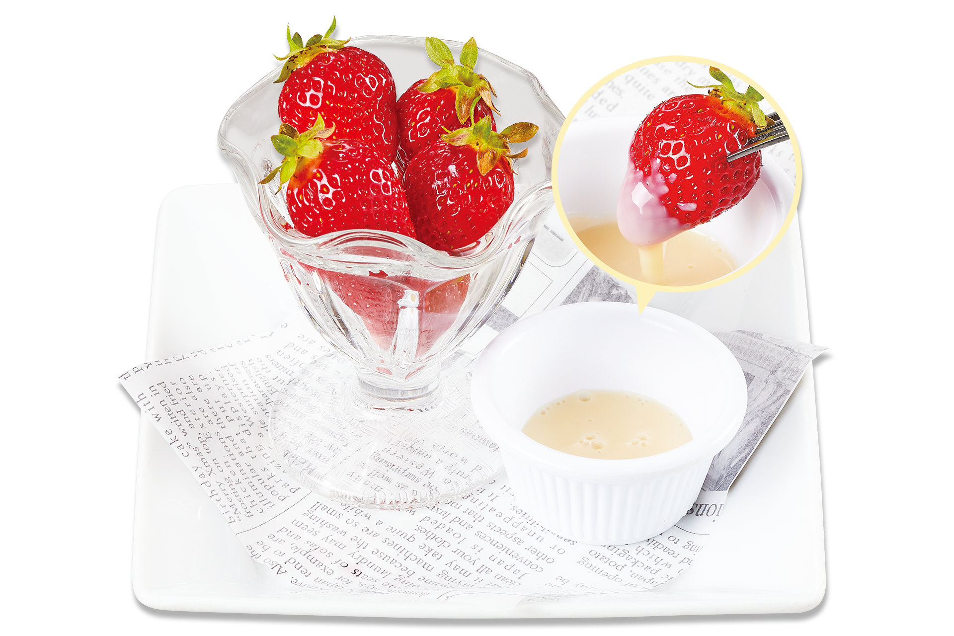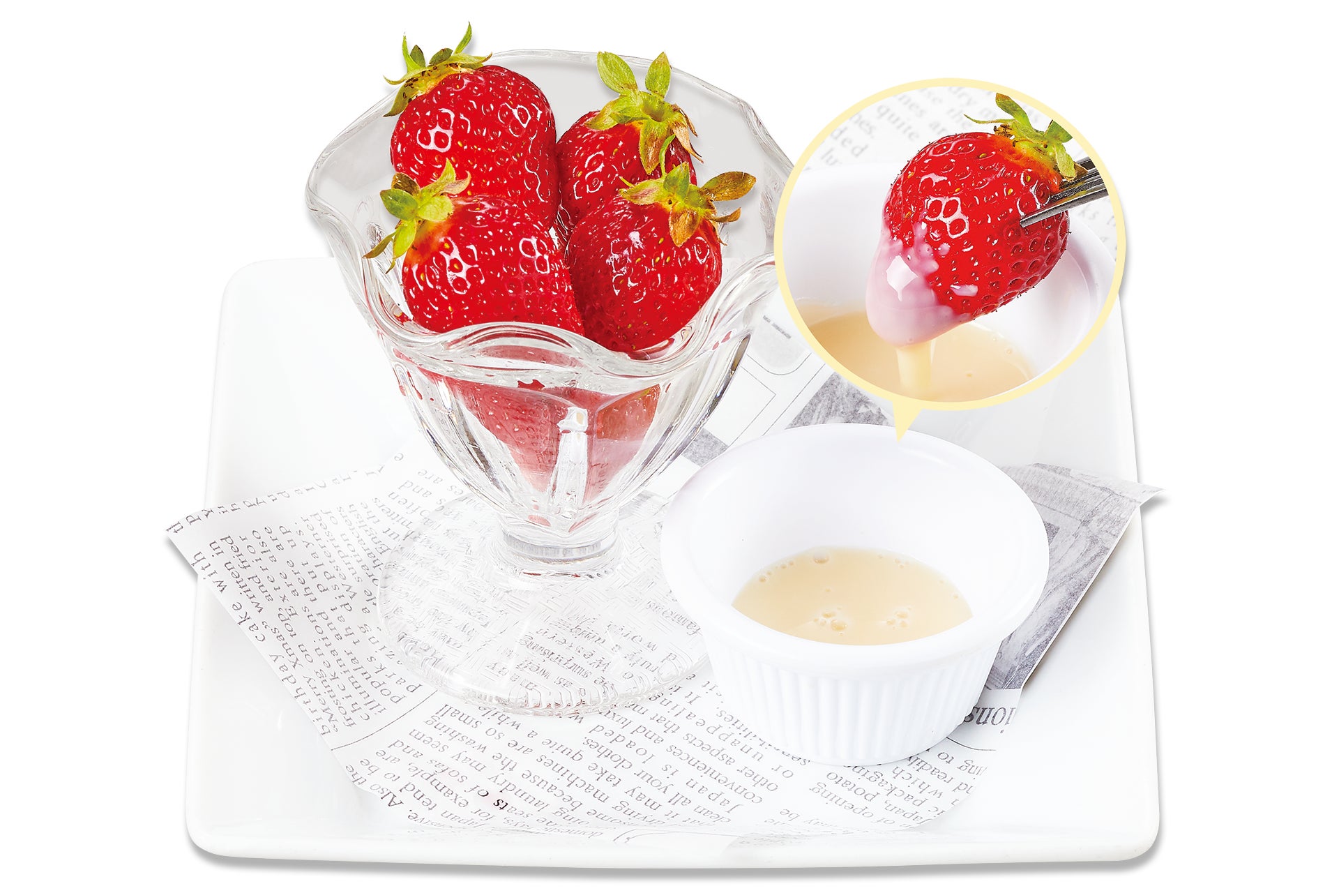 旬の苺をそのままの美味しさで。たっぷり添えた練乳につければ、王道にして至福の味わいです。