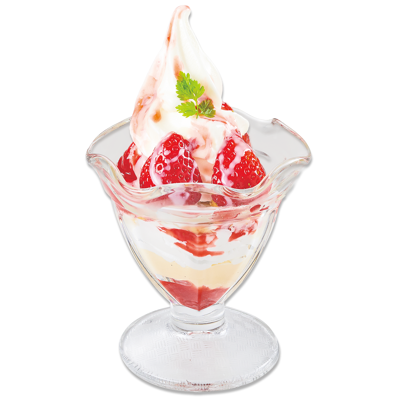 ひんやりとしたソフトクリームに、旬の苺を添えて。 ソフトクリームの優しい甘みが、苺のフレッシュな美味しさを引き立てます。