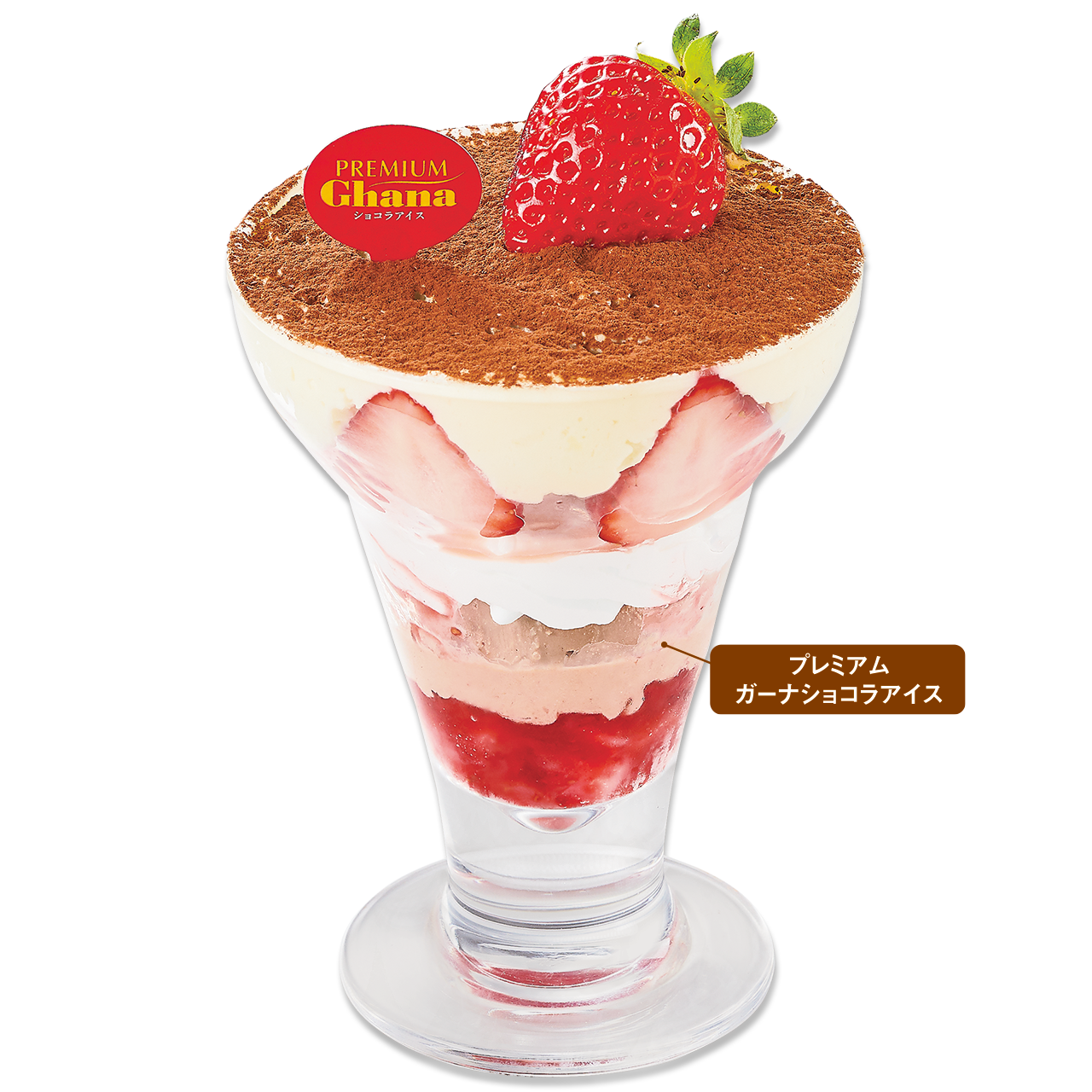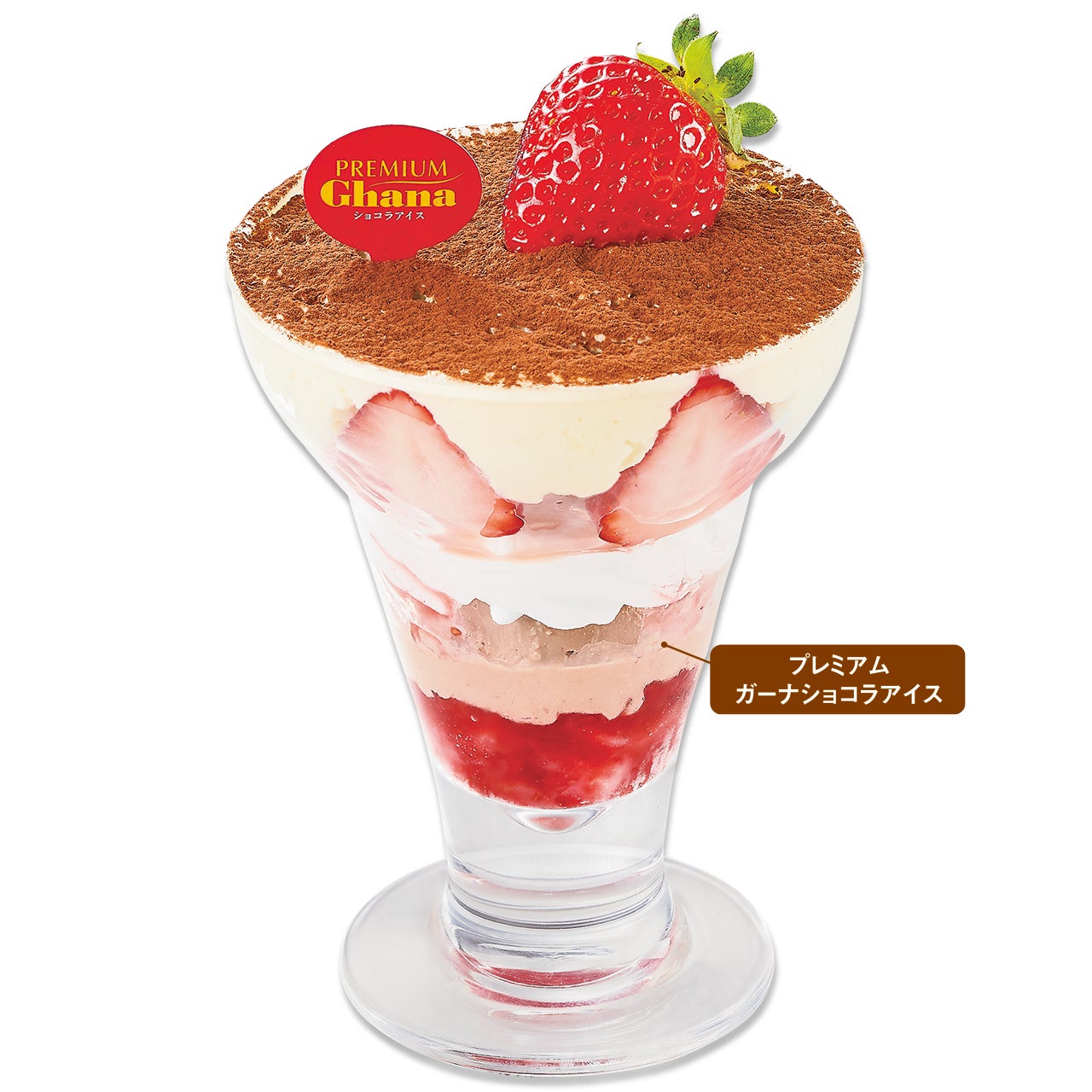 プレミアムガーナショコラアイスの苺ティラミスパフェ