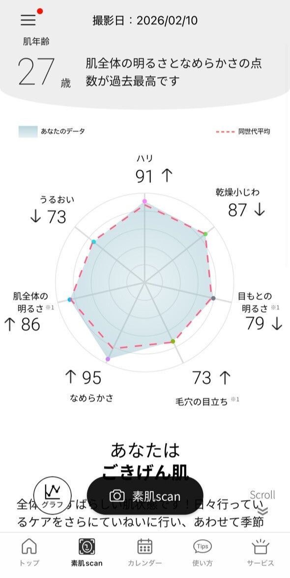 また、肌診断後の顔写真には「美肌フィルター」を適用し、あえて柔らかい質感で表示することで、素肌を直視する心理的ハードルを軽減。ユーザーが無理なく撮影を継続できるよう設計されています。さらに、過去の積み重ねを直感的に把握できるカレンダーデザインや、改善点を前向きに伝えるフィードバック機能などを取り入れ、スキンケアの習慣化を支援し、日々の使用に自然と寄り添う体験を実現しています。