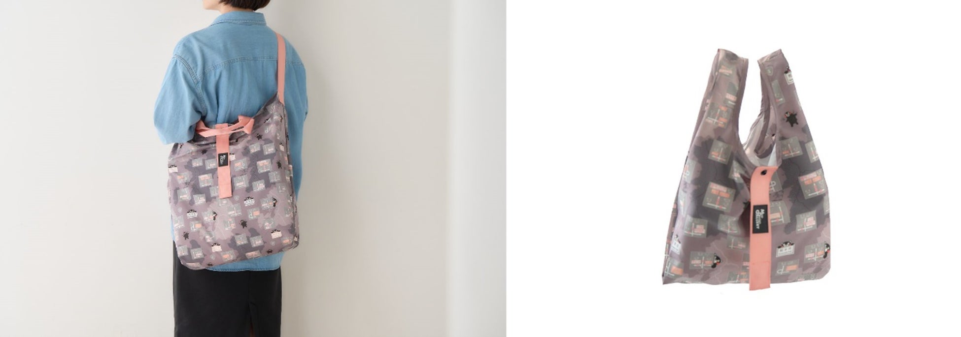 ゼンリンが保有する熊本県内の方面案内看板データと、くまモンのイラストを全面に散りばめたパッカブルバッグとコンビニエコバッグを販売します。
