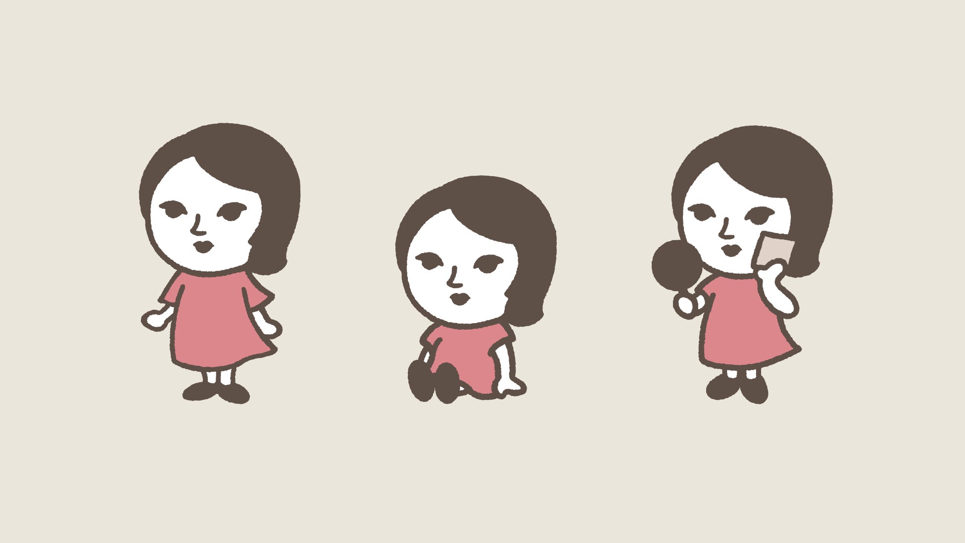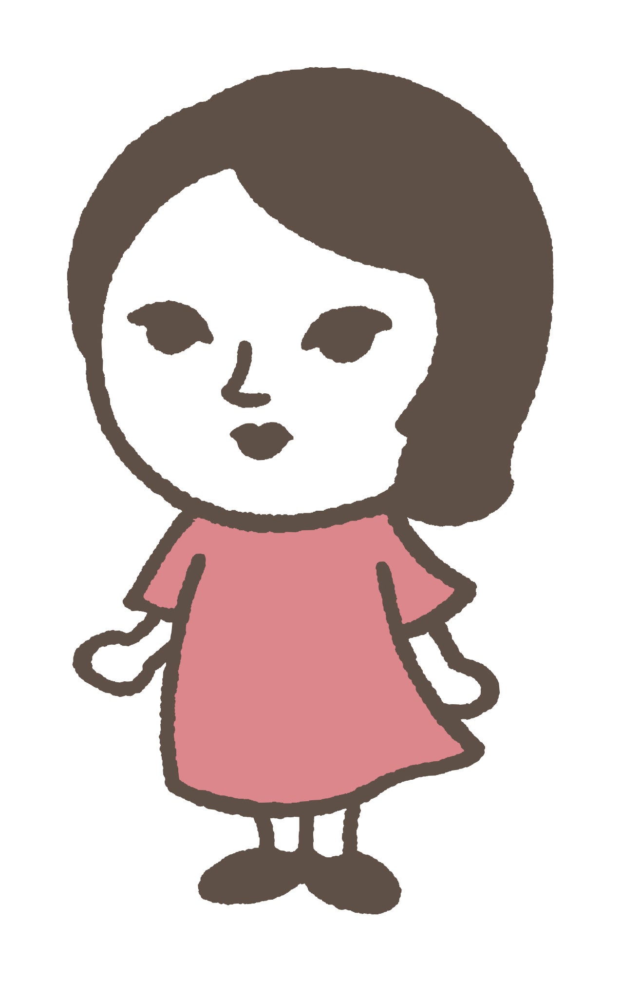 キャラクター化するならば、元のイメージを最大限に生かしながら、新しい魅力を付け加えたい!特徴的な切長の目と横分けの前髪は残して、鼻の形、輪郭を変え、シンプルなワンピース姿に。