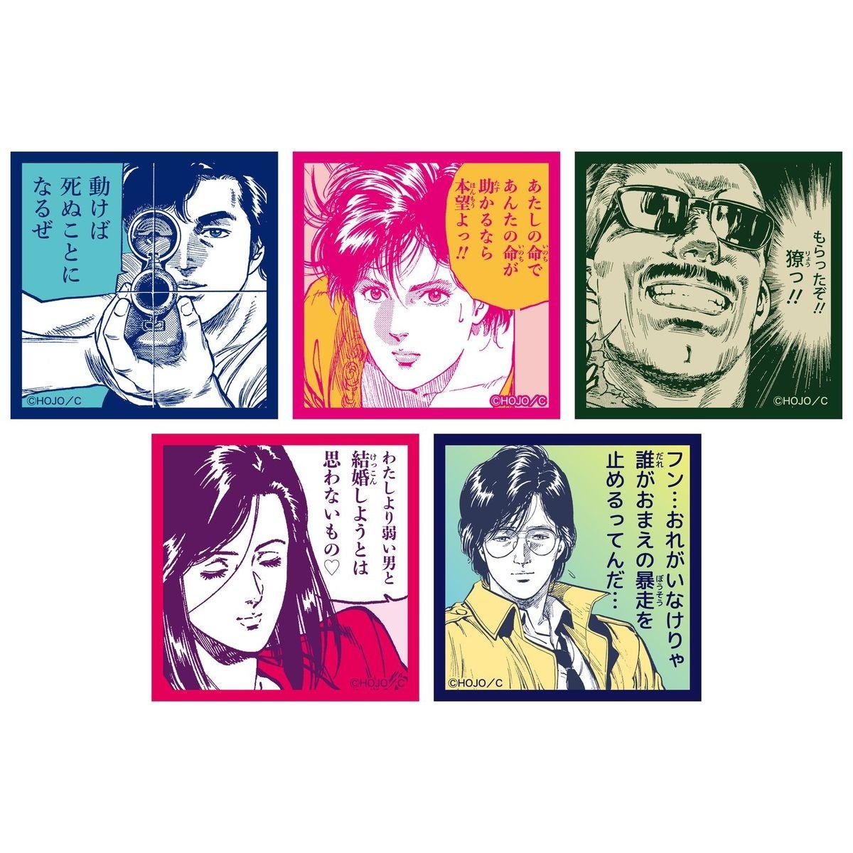 変装をしていつもよりセクシーな香と、おしゃれなスーツで決めた紳士的な獠のデフォルメアイテム。