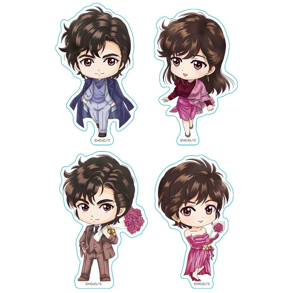 二頭身にデフォルメされた獠と香がかわいらしいアクリルスタンド。