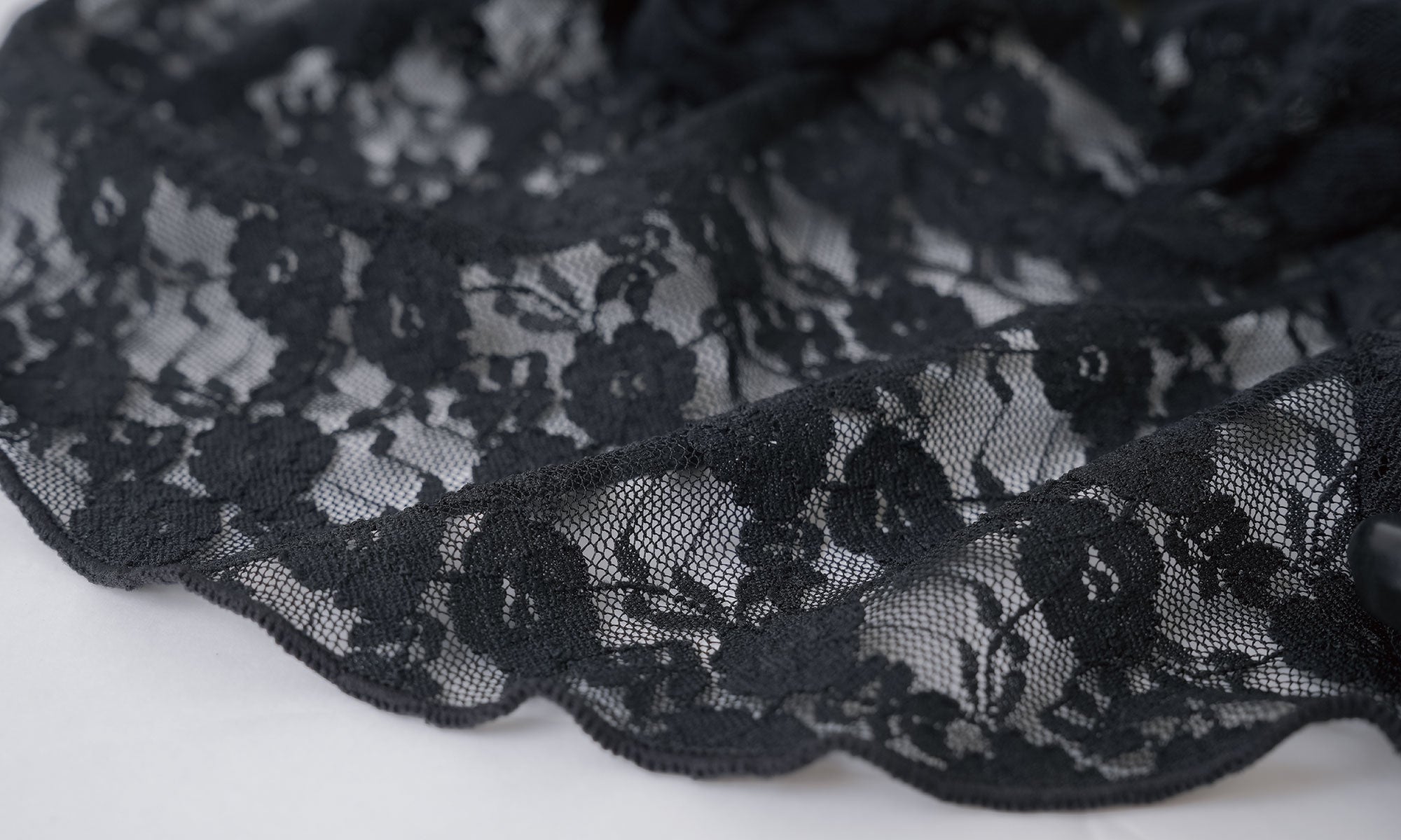 お化粧を崩さず着脱できるやわらかストレッチレース。