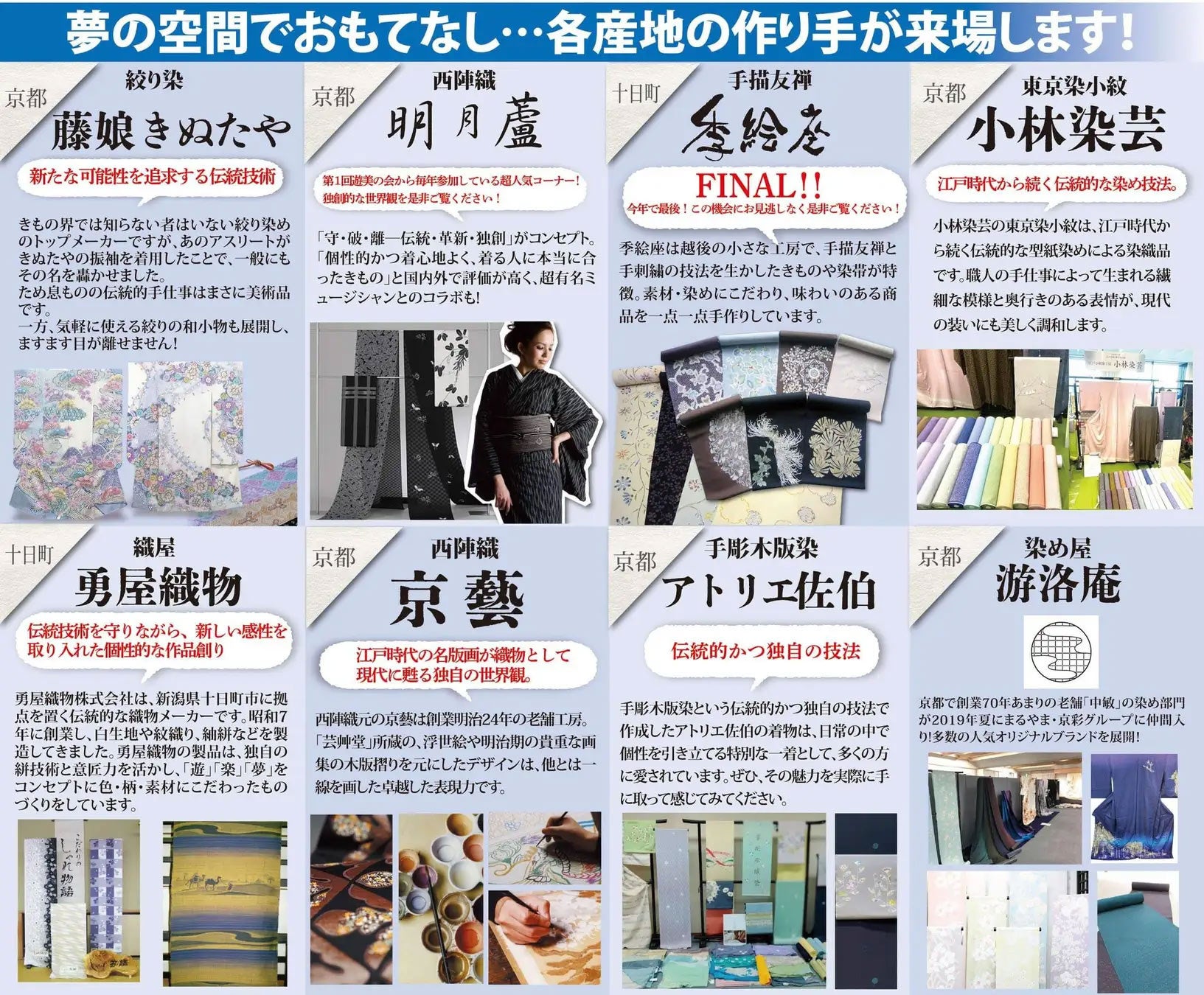「遊美の会」は、産地直送をテーマに、日本各地の染織工房や職人と直接触れ合える展示即売会です。