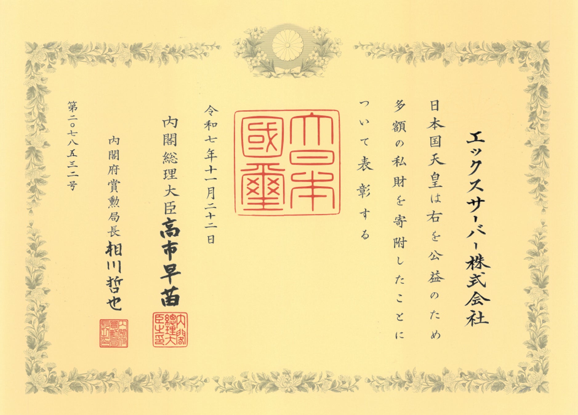 エックスサーバー株式会社、内閣府から「紺綬褒章」を受章