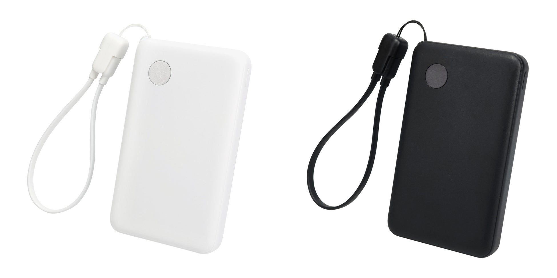 薄型でコンパクト設計、付属ケーブルの端子部分を収納するストラップが付属しているので、ケーブル忘れの心配もありません。