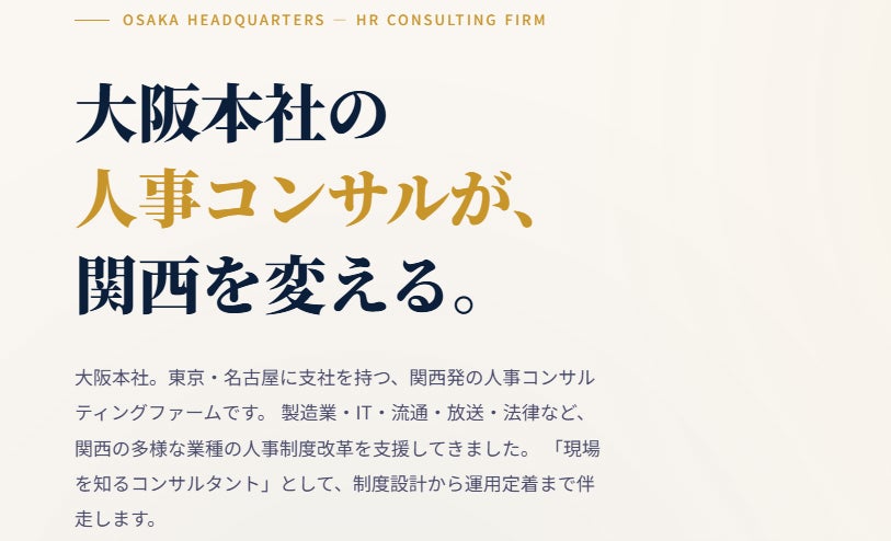 今回公開したページでは、関西エリアにおける人事コンサルティング支援の実績や提供サービスを整理し、企業が自社課題に近い事例を参考にできる構成としています。