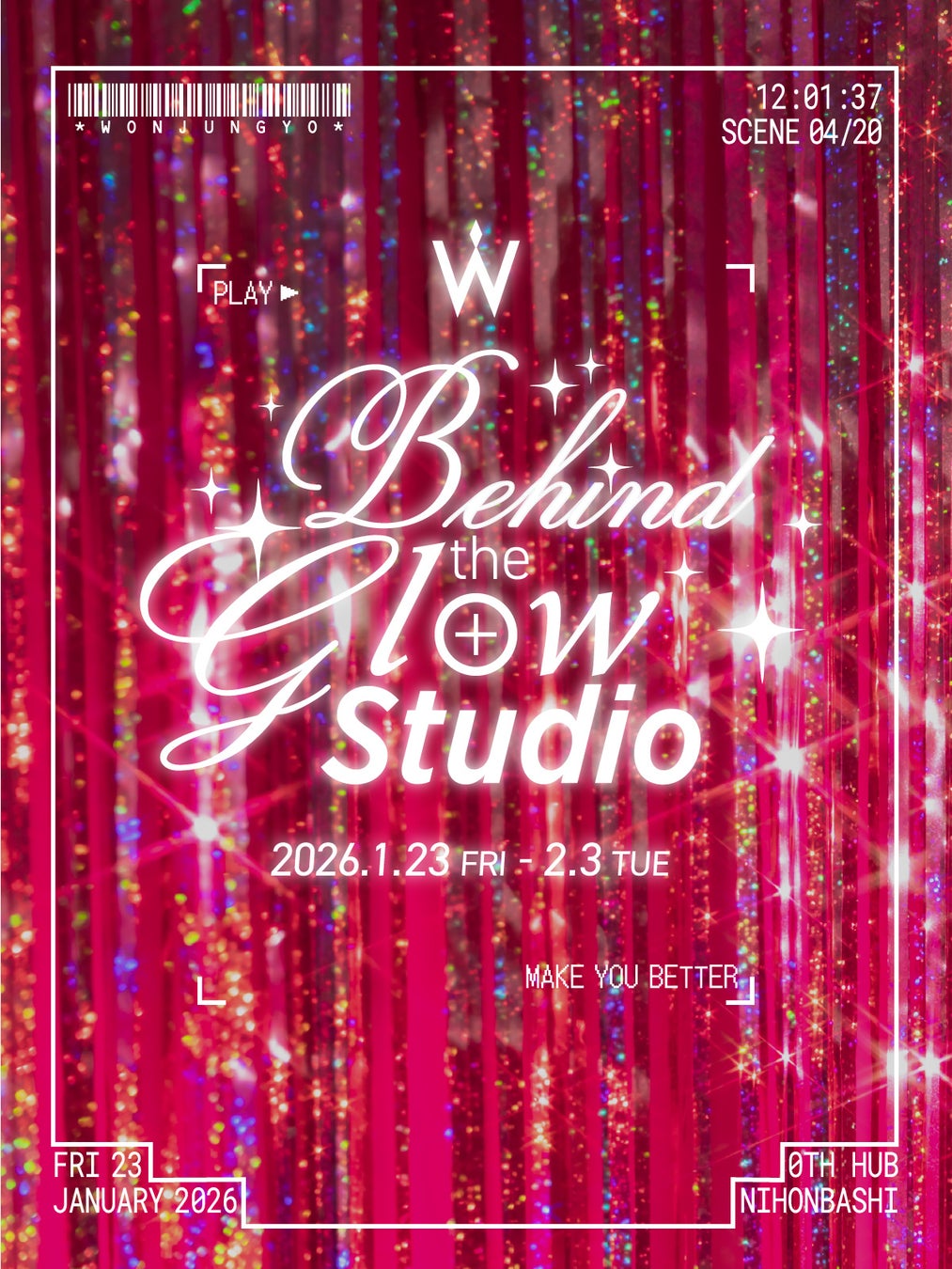 2026年1月に「Wonjungyo」「Wonjungyo Hair」合同の期間限定POPUPストア「Wonjungyo Behind the Glow Studio」の開催が決定!今回のPOPUPテーマは、“アイドルの撮影現場”をイメージ。華やかに装飾されたフォトスポットや、楽屋風のタッチアップブースなど、憧れのアイドルになったようなスペシャルな時間をお楽しみいただけます。また、「Wonjungyo」の新商品「W デイリームードアップパレット」「アーティストタッチブラシ #04・#05」「トーンアップベース N 101メロンミント」の先行発売をするほか、ブランドロゴをあしらったシュシュやバニティポーチなど、豪華な購入特典をご用意し、皆さまのご来場をお待ちしております。POPUP情報の詳細については公式SNSにて随時発表いたします。