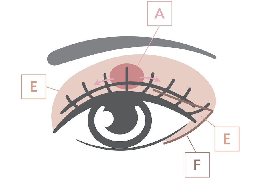 ①E:アイメイク全体のベース+三角ゾーン