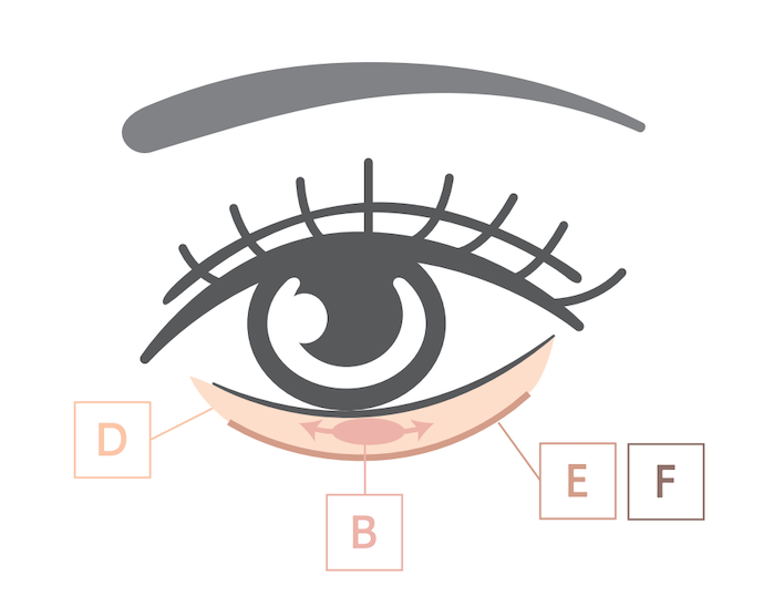 ②B:涙袋のポイントカラーとして塗布