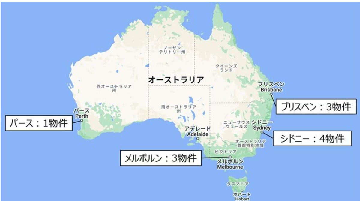 本事業は、豪州の4都市(シドニー、メルボルン、ブリスベン、パース)にある11か所の物流不動産(以下「本物件」)の持分を取得し、ESR Group Limited(註)の豪州現地法人等と共同で賃貸・開発事業を行うもので、当社初の豪州における物流不動産事業となります。
