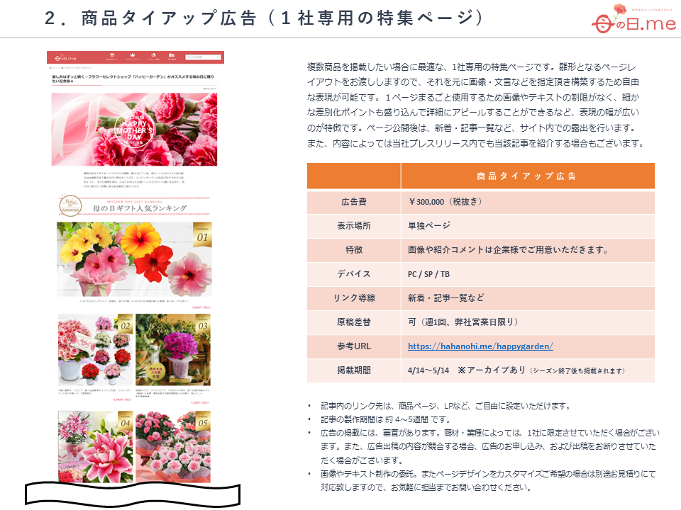 母の日.me広告募集について ( https://hahanohi.me/ad/ )