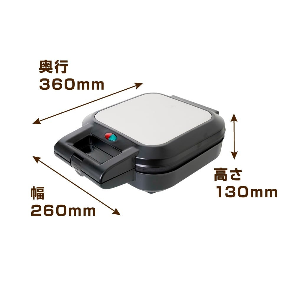 幅260×奥行360×高さ130mm。使い方は市販の冷凍パイシートを付属の抜き型で型抜き(表側と裏側で底面と天面の型抜きが可能)した生地を本体にセット、セットした生地の中におかずやレトルト食品などお好みの具材を入れ、型抜きした蓋部分の生地をかぶせて本体を閉じれば準備が完了。あとは20分~30分程度でサクサクの美味しいおかずパイが出来上がります。おかず以外にもフルーツなどを入れてデザートパイも作れます。