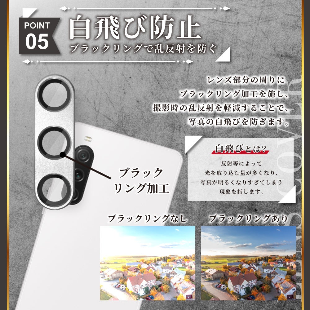 レンズ部分の周りにブラックリング加工を施し、撮影時の乱反射を軽減することで