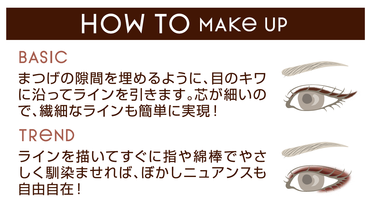 濃淡自在のやわらか発色。夜まで落ちないクリーミーペンシルライナーです。