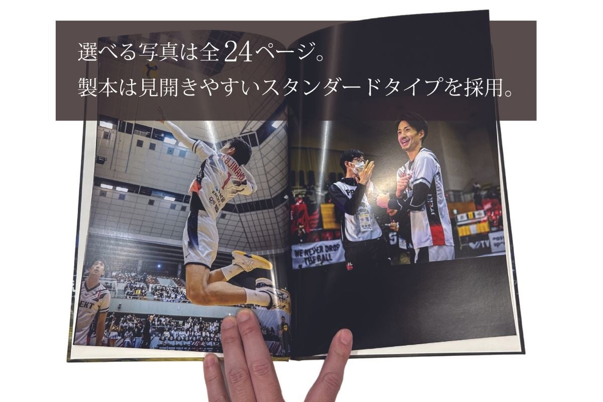 約500枚以上ある写真の中から、好きなショットを選択いただけます。もちろん、推し選手の写真だけで写真集をつくることも可能です。