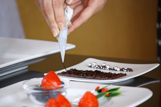 アカデミックスクールでは、楽しく体験しながら料理のコツやテーブルマナーを学んでいただけます。初めてケーキ作りに挑戦する女性や、お料理が趣味の男性も多くご参加いただいており、また、今までに開催した6回の講習すべてに参加されている方や、シェフの調理工程をひとつずつ撮影される方など熱心な方々もいる人気の講習会です。
