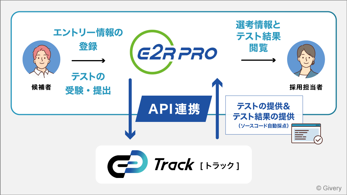 Track Testは現在、お客様の採用業務オペレーションを楽にするため、数多くの採用管理システムとのAPI連携を積極的に進めています。お客様からe2R PROとの連携要望をいただいたことがきっかけで、この度の連携が実現いたしました。