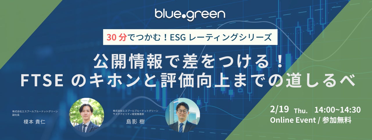 株式会社エスプールブルードットグリーン(本社:東京都千代田区、取締役社長:八林公平)は、2026年2月19日(木)14:00より、無料オンラインセミナー「~30分でつかむ!ESGレーティングシリーズ~公開情報で差をつける!FTSEのキホンと評価向上までの道しるべ」を開催いたします。