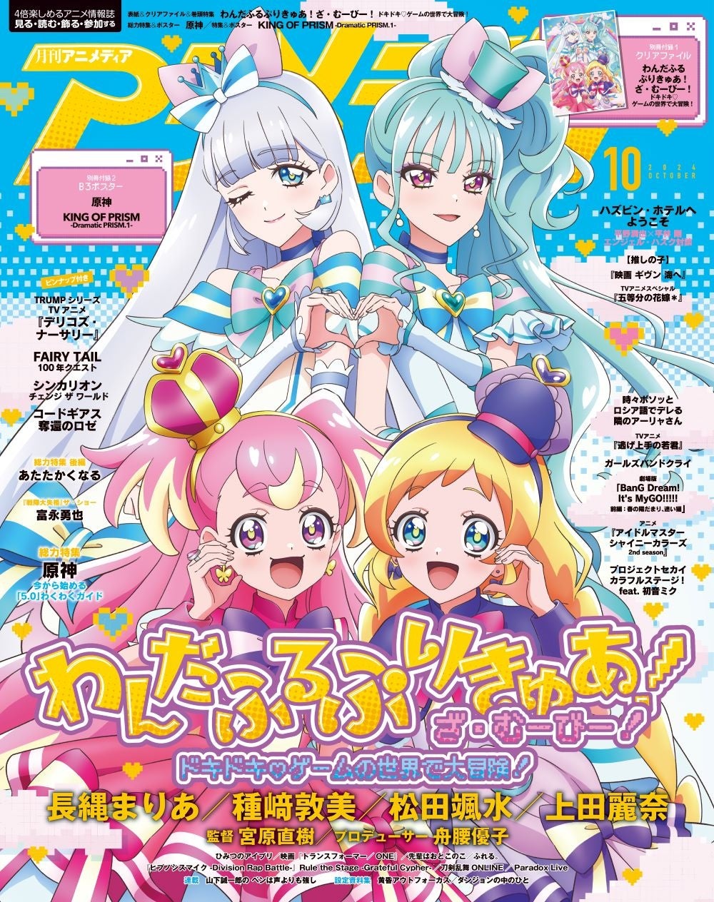 アニメディア10月号は『わんだふるぷりきゅあ!ざ・むーびー! ドキドキ♡ゲームの世界で大冒険!』のクリアファイル『原神』『KING OF PRISM -Dramatic PRISM.1-』のポスター付