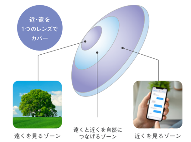 メニコン独自のバイフォーカルデザインで、疲れ目や手元の見づらさを感じる方の見え方をサポートします。