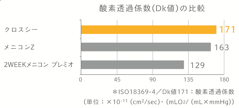 メニコン史上最高の酸素透過係数(Dk値)171*を誇り、長時間レンズを装用される方にもおすすめです。