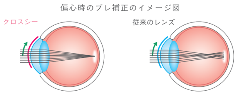 レンズ外面にブレ補正非球面を採用。まばたきしても焦点がぶれにくく、クリアな視界が得られます。