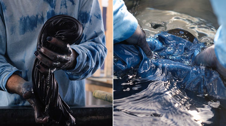 一方で西を代表するのは、沖縄の「琉球藍研究所」。600年超の歴史を持つ伝統染色「琉球藍染め」を、藍を育てる農業から泥藍づくり、染色まで一貫して自分たちの手で行い、ファッションの世界に復権させた、いま注目の工房です。