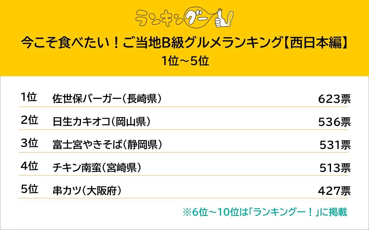 今こそ食べたい「ご当地B級グルメ※西日本」を調査。1位は佐世保バーガー(長崎県) に決定。