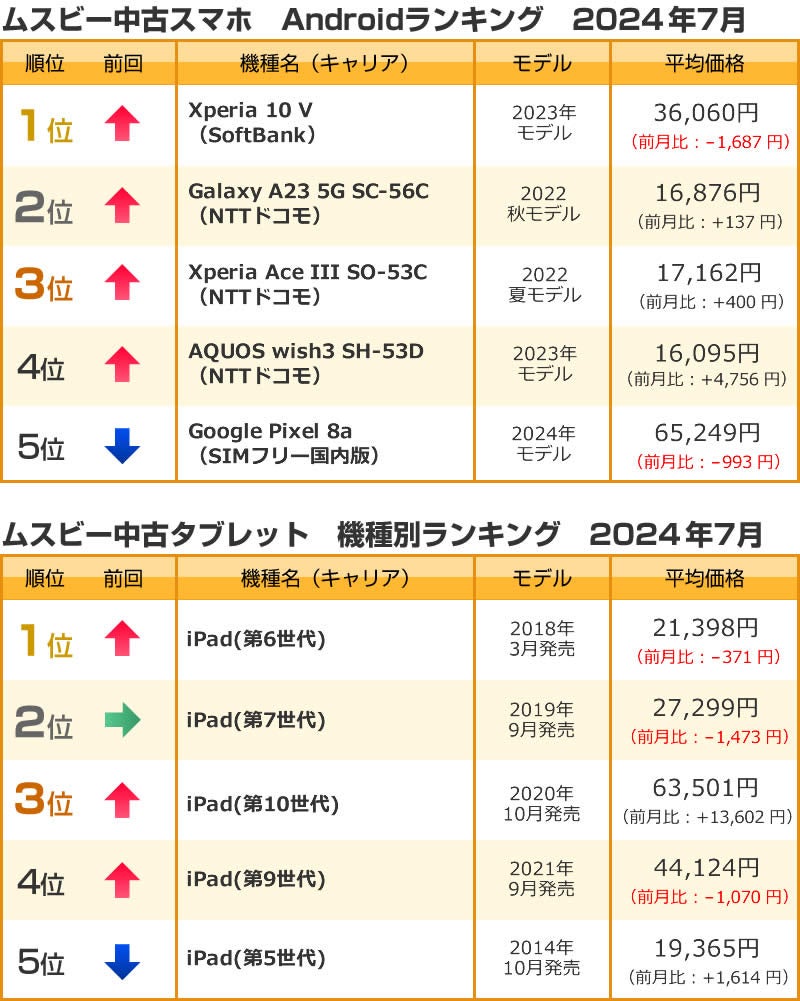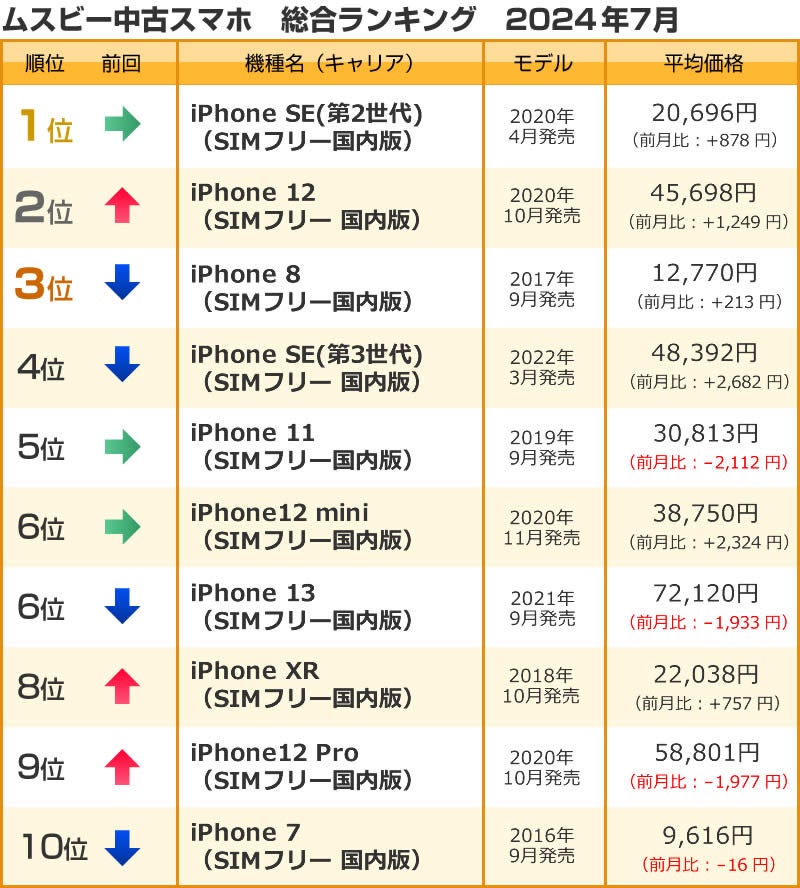 ムスビー/2024年7月の中古スマホ取引数ランキング