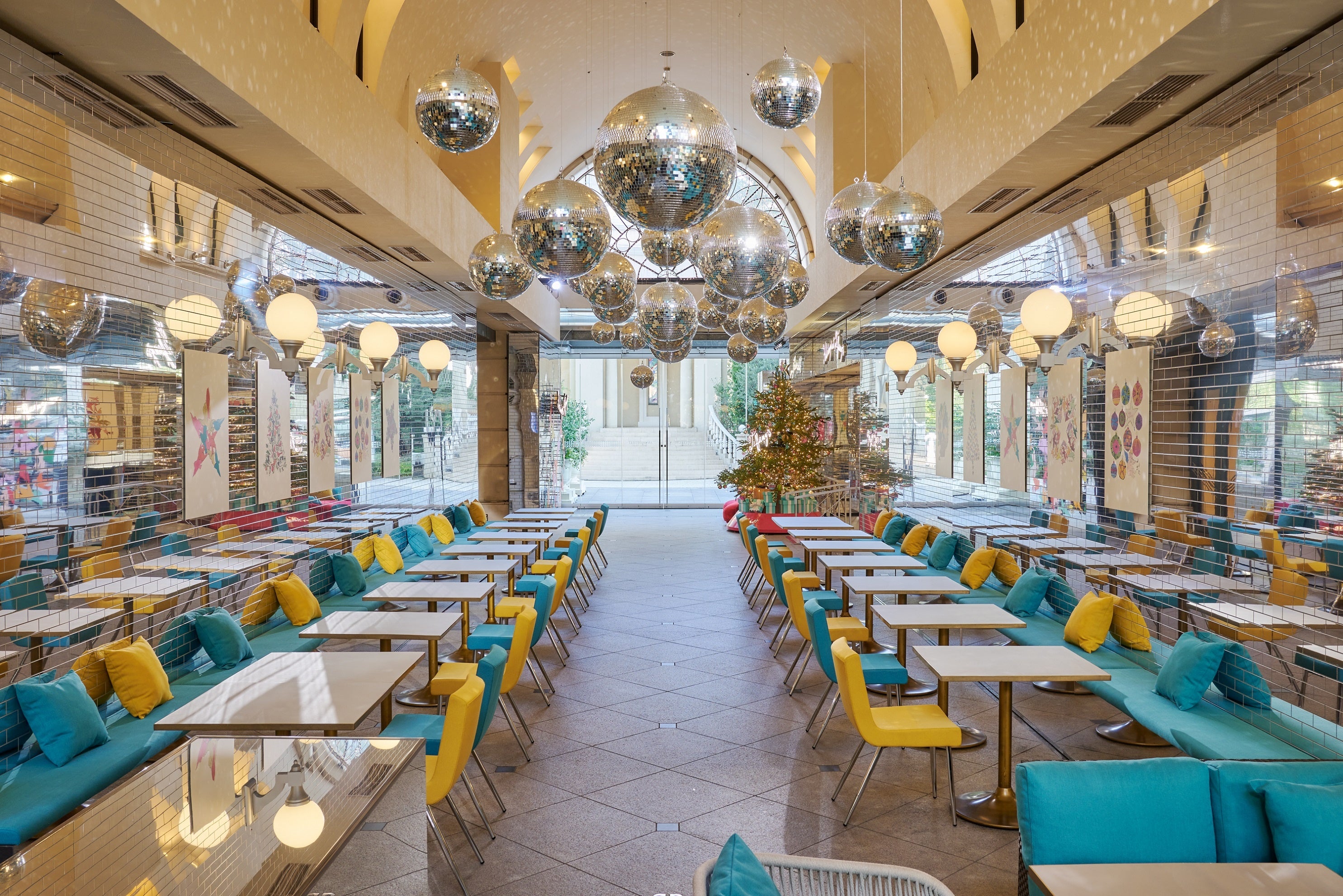 カフェは、ティファニーの華やかなホリデームードに彩られ、カラフルな星のモチーフや煌びやかなオーナメントが飾られたクリスマスツリーも登場いたします。期間中はブランドのロゴを表現したスペシャルドリンクなどの限定メニューと、予約制にてエクスクルーシブな“ブレックファスト アット ティファニー”やランチ、ディナーなどをご用意。