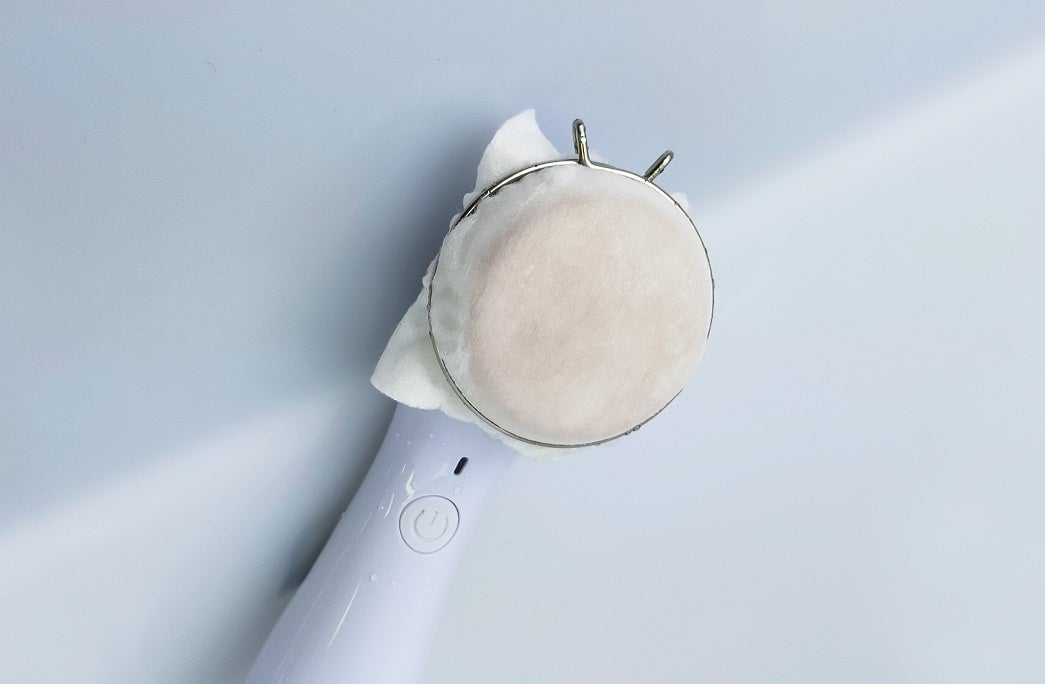 しっかり固定するスプリングタイプのリング付きだから、美容液などと併用しながらケアでき、コットンの乾燥を気にする必要がないため摩擦によるダメージも感じさせません。