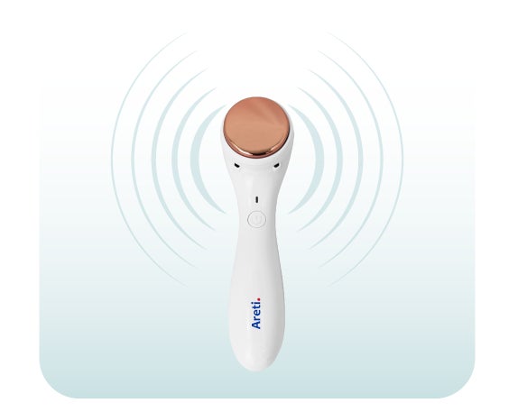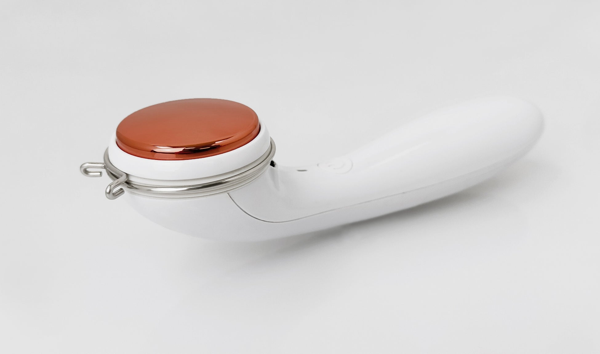 アレティのプラズマ美顔器 リンクル(P)はプラズマイオン発生装置を内蔵。肌に直接電極が触れることなく手軽にケアを継続でき、6000回/分と12000回/分の微振動で顔の凝りをほぐします。