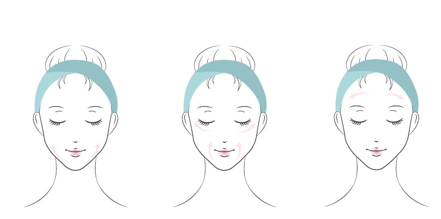 2.お好みの振動数を選び、フェイスライン→口元→頬→目尻→おでこの順で軽く引き上げるようにし、美容成分が肌に浸透しやすいようゆっくり動かすだけ。