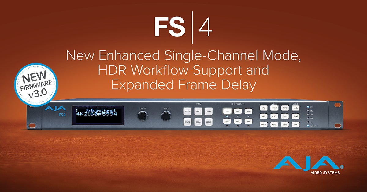 FS4 の新しいファームウェア v3.0 が発表されました。FS4 は、4K/UltraHD およびマルチチャンネル HD 対応フレームシンクロナイザーおよびアップ / ダウン / クロスコンバーターです。今回の無料アップデートでは、新しい機能強化が多数搭載されました。