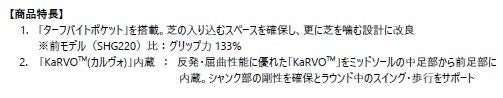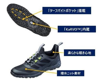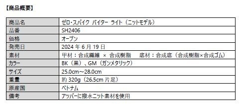 同商品は、撥水加工を施したニット素材を使用した約320g(26.5㎝片足)の軽量モデルで、『ZSP-BITER LIGHT』(SHG350)に搭載したアウトソールを採用し、高いグリップ性能を確保しています。さらに、履口周りとベロを一体化し、「柔らかくフィット感のある履き心地」を追求しています。また、スポーティなアッパーデザインに合わせたシューレース仕様の他、撥水ニット素材の採用により、朝露の中でも快適にプレーいただけます。
