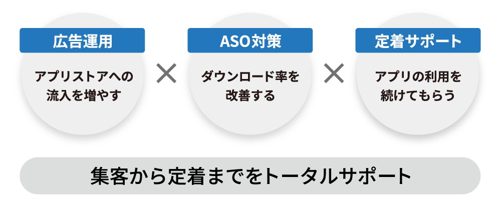 広告運用とASO(アプリストア最適化)対策を同時にご提供し、理想的なユーザー獲得を実現。アプリマーケティング黎明期から多くのアプリを総合支援しているReproだからできる、ユーザー獲得から定着までの課題を一挙に解決するアプリ集客サービスです。