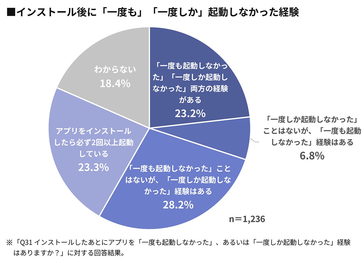 インストール後に「一度も」「一度しか」起動しなかった経験がある人は全体の58.2%に上る
