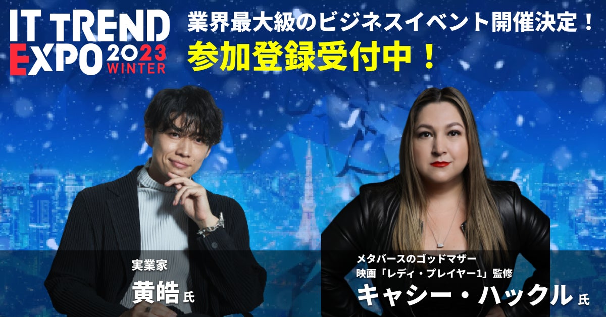 株式会社イノベーション(東証グロース 証券コード3970)のグループ会社である、株式会社Innovation & Co.(本社:東京都渋谷区、代表取締役社長:齊藤和馬、以下「Innovation & Co.」)は、第7回目の開催となる業界最大級のオンライン展示会「ITトレンドEXPO2023 Winter」を、2023年2月7日(火)〜 2月10日(金)に開催。併せて、豪華特別ゲストの登壇が決定しましたことをお知らせします。