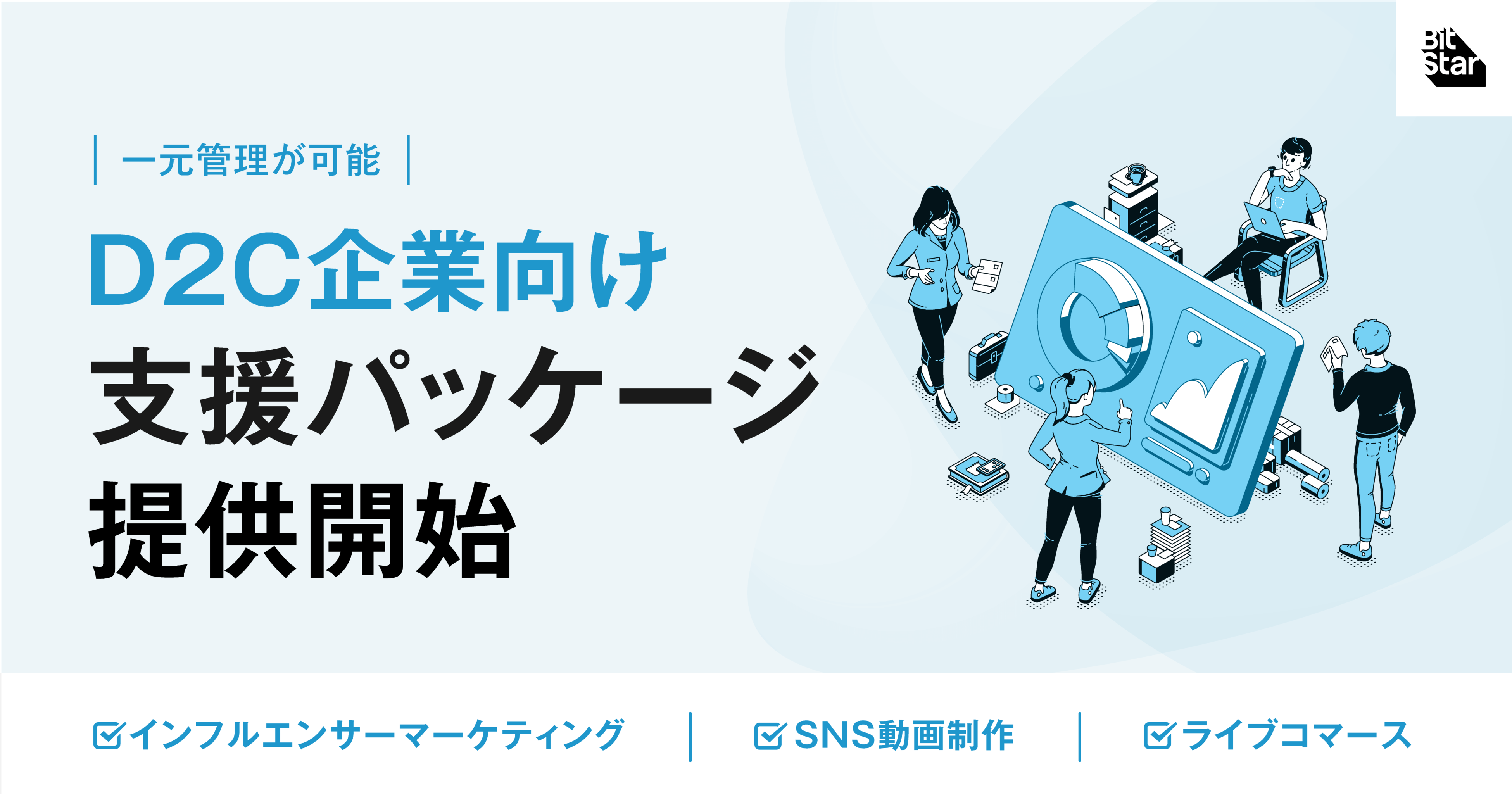 インフルエンサーマーケティング・SNS動画制作・ライブコマースを一元実施。「D2C企業向け支援パッケージ」の提供開始