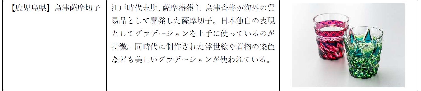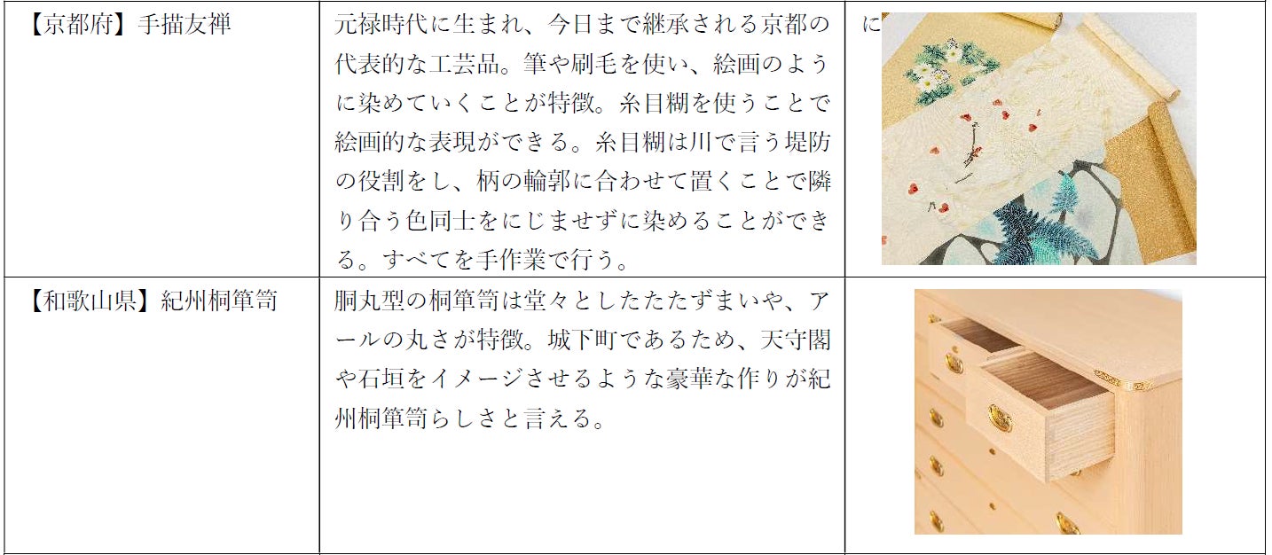 【京都府】手描友禅、【和歌山県】紀州桐箪笥、【鹿児島県】島津薩摩切子
