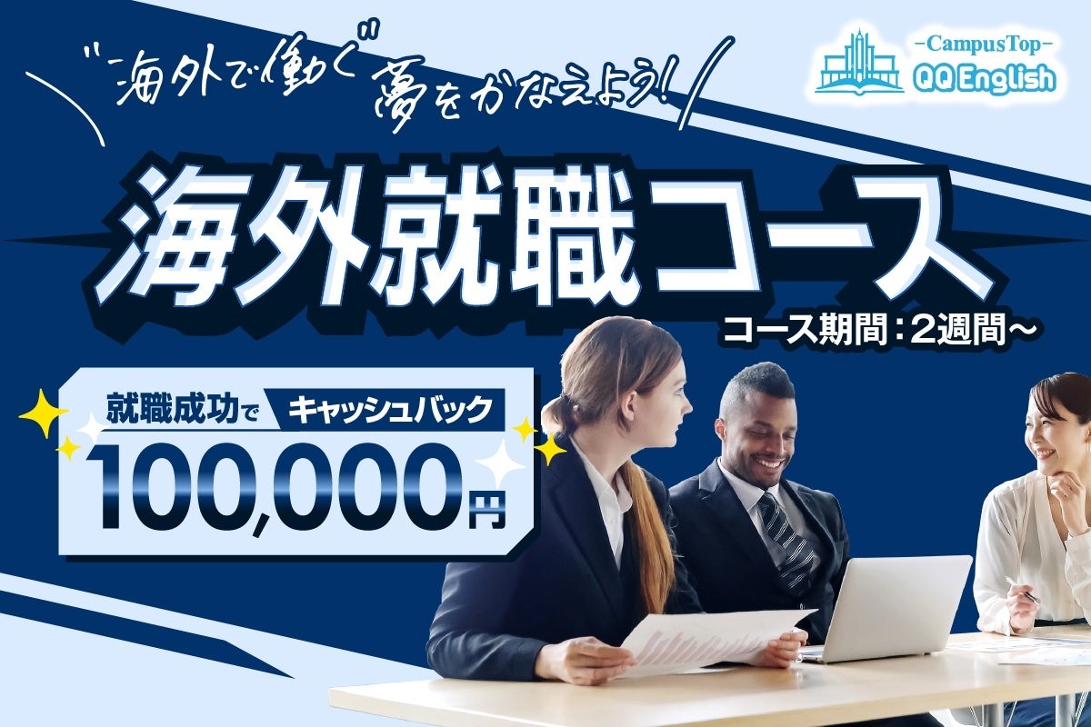 2週間以上の留学と就職後3ヶ月の勤務で、10万円のキャッシュバックが適用されます。