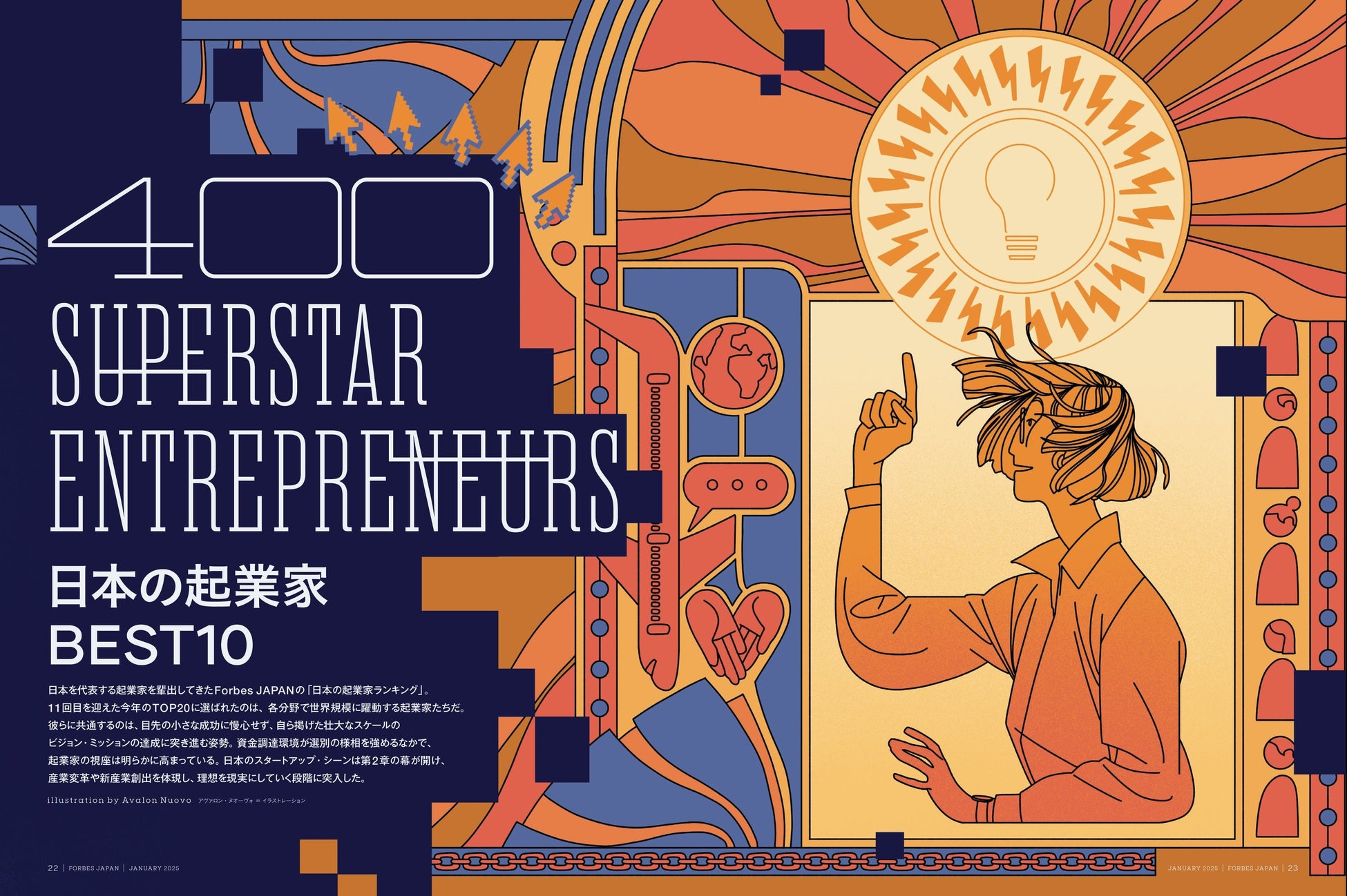 「日本の起業家ランキング」は、日本を代表する起業家を多数輩出してきたForbes JAPANの名物企画。特集内では、BEST10に選出されたすべての起業家のインタビュー記事や、日本発の主要なスタートアップ起業家を網羅した新企画「日本の起業家名鑑400」、VC業界が注目する「日本で最も影響力のあるベンチャー投資家ランキング」、Forbes米国版が次なるユニコーン企業25社を選出した「NEXT BILLION-DOLLER STARTUPS」の最新版も掲載。スタートアップ・シーンの今と未来が見えてくる決定版として、内容盛りだくさんでお届けします。